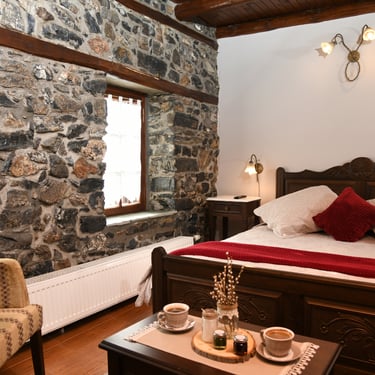 Παραδοσιακά δωμάτια με τζάκι και σύγχρονες ανέσεις για άνετη διαμονή.